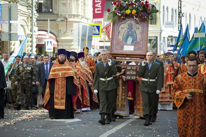 Основная часть торжеств прошла на Красной Площади и на улице Ильинка, где находится Ильинский храм – главный войсковой храм Воздушно-десантных войск (ВДВ), которого российские десантники почитают своим небесным покровителем. В крестном ходе, который начался после совершения молебна и Божественной литургии, приняли участие, помимо священнослужителей и обычных прихожан, представители руководящего состава и военнослужающие ВДВ, в том числе командующий Владимир Шаманов и курсанты Рязанского воздушно-десантного командного училища.