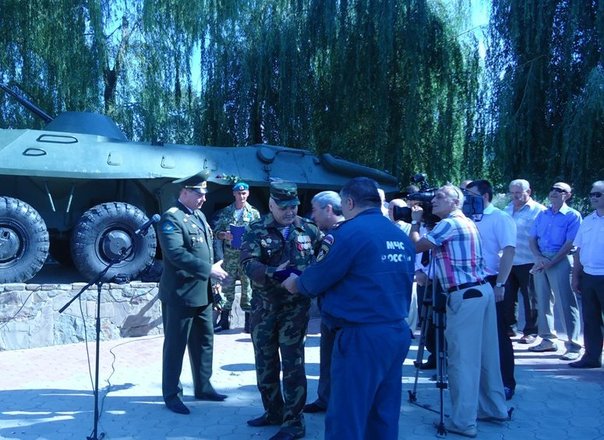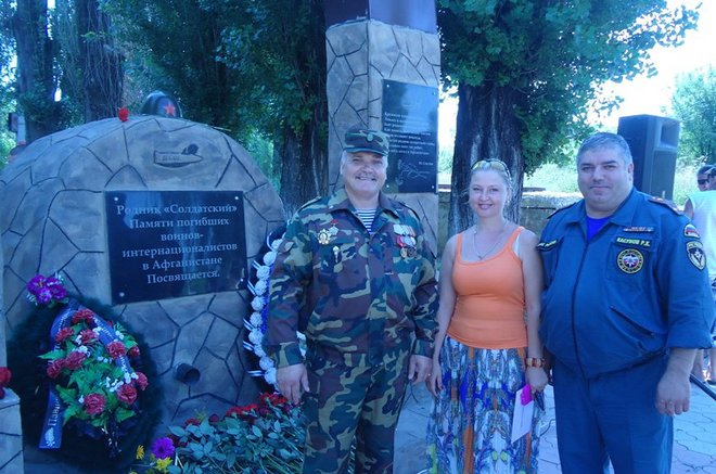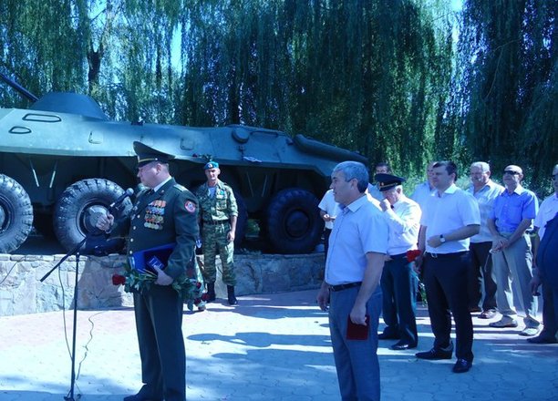 Член президиума регионального отделения «ОФИЦЕРОВ РОССИИ» по Республике Адыгея Джанбеч Мирза от имени правительства и главы республики поздравил десантников с праздником и вручил председателю Общества инвалидов войны в Афганистане Олегу Абрашкину медаль «Патриоты России».