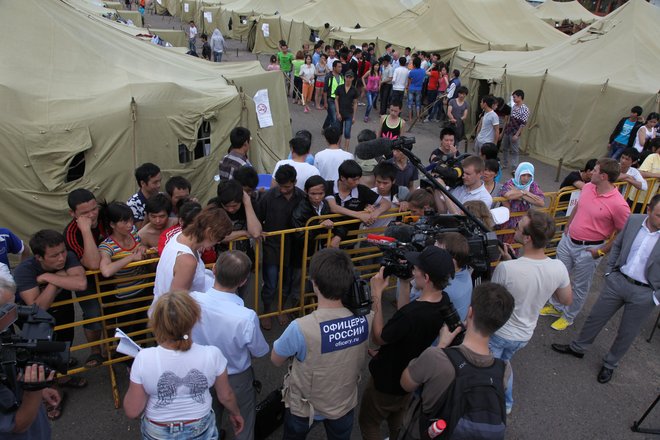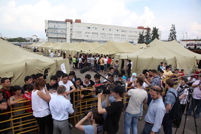 7 августа в палаточный городок для нелегальных мигрантов в столичном районе Гольяново была доставлена очередная партия гуманитарной помощи, которую собрали «ОФИЦЕРЫ РОССИИ», Гулагу.нет и Общественный совет при ГУ МВД Москвы. На этот раз обитателям лагеря привезли 100 тазов, 650 полотенец, стиральный порошок, предметы гигиены, витамины и мюсли.