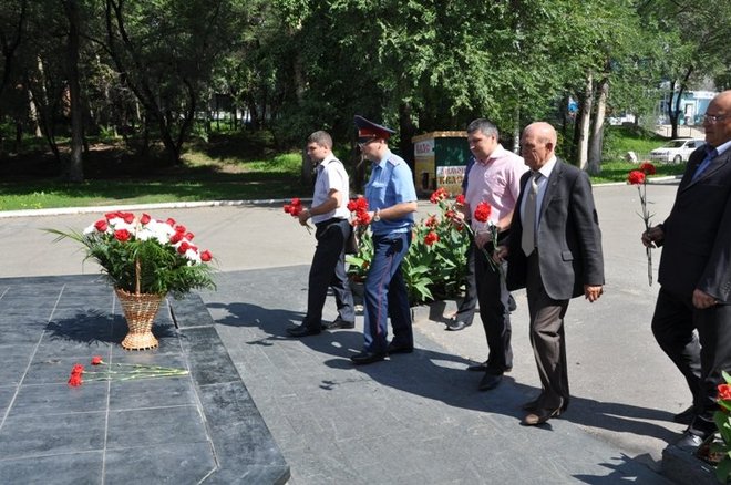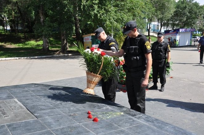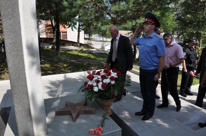 После окончания торжественного собрания ветераны и члены семьей погибших сотрудников возложили цветы к мемориалу Памяти погибших сотрудников ОВД при исполнении служебных обязанностей» в Центре профподготовки УМВД России по Хабаровскому краю и к памятнику «Черный тюльпан».