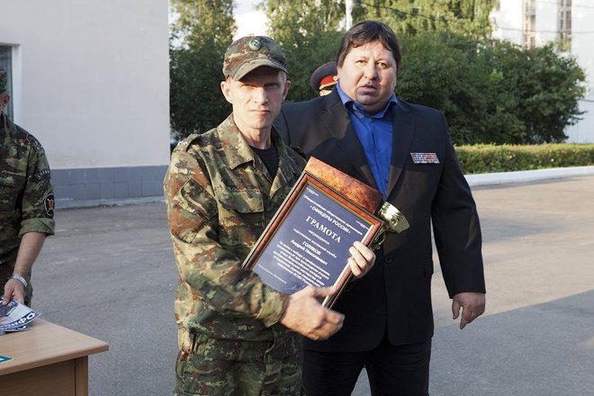 Член президиума «ОФИЦЕРОВ РОССИИ» Николай Соловьев поздравил победителей конкурса с заслуженной победой, вручил им подарки, а самого возрастного участника соревнований – Андрея Голякова – за волю к победе наградил почетной грамотой от «ОФИЦЕРОВ РОССИИ».