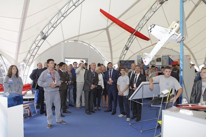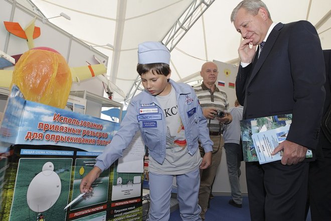 В специальной экспозиции авиасалона были представлены около тысячи работ юных авиаконструкторов и будущих ученых. Это модели самолетов, конструкции луноходов, уникальные технические разработки. Как отметила руководитель фестиваля «От винта», члена президиума «ОФИЦЕРОВ РОССИИ» Виктория Соболева, юные изобретатели создали немало удивительных проектов: начиная от самолета, у которого размах крыльев 1,5 м, а вес всего 2 г, и заканчивая гигантским трансформером.