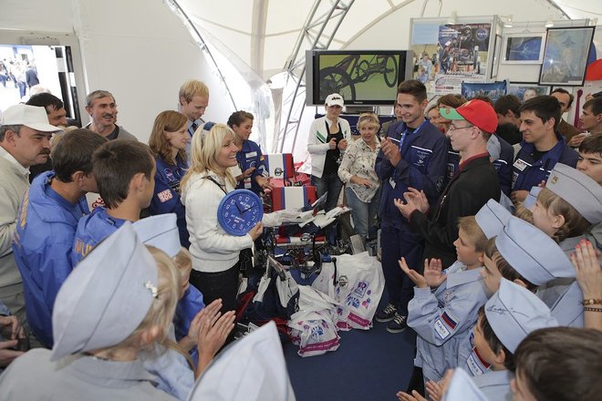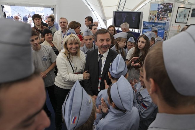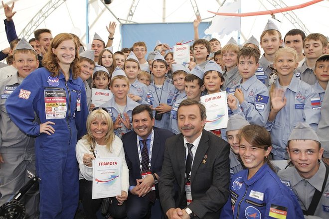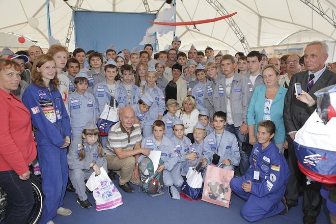 Дети с удовольствием общались с летчиками-космонавтами Игорем Волком и Александром Лазуткиным и с восторгом слушали их рассказы о космосе.