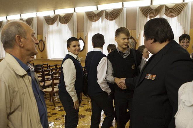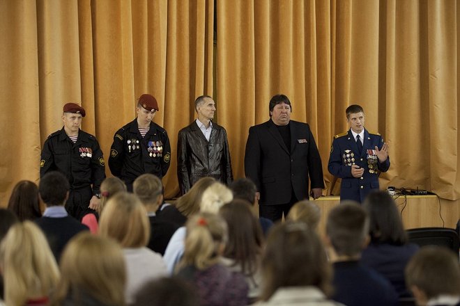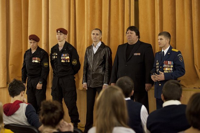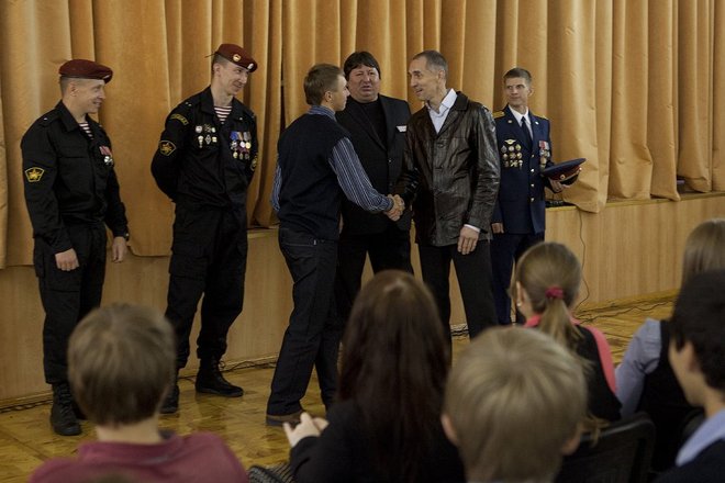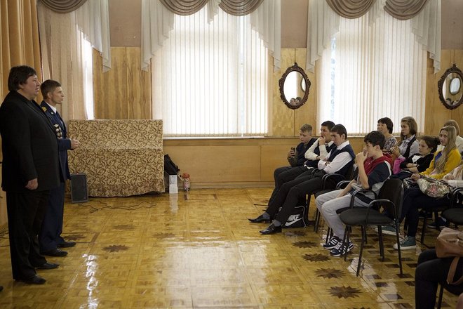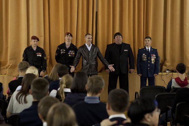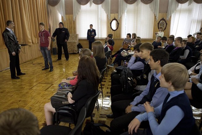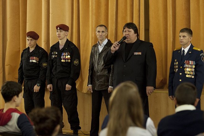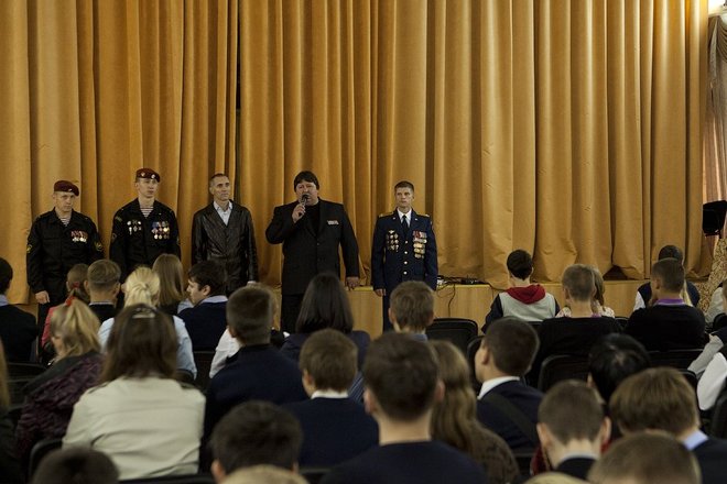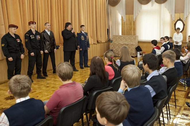 На встречу с учащимися 8-11 классов пришли член президиума «ОФИЦЕРОВ РОССИИ» Николай Соловьев и офицеры ОСН «Факел» УФСИН России по Московской области и Центра специального назначения внутренних войск МВД России «Витязь».