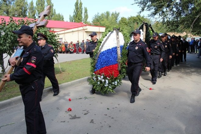 После отпевания в часовне на местном кладбище под звуки троекратного оружейного залпа и гимна Российской Федерации старшего сержанта полиции Ивана Шахового похоронили на Аллее героев.
