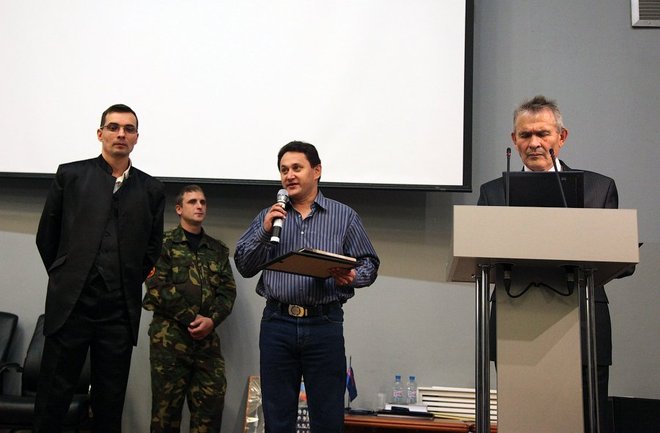За большую работу по открытому и объективному освещению исторических событий советской и современной истории России от организации «ОФИЦЕРЫ РОССИИ» Игорь Калашников вручил Александру Глушко медаль «За офицерскую честь».