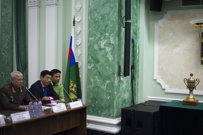 На вопросы журналистов отвечали директор ФССП России Артур Пафенчиков, заместитель главнокомандующего внутренними войсками МВД России Юрий Бабкин, заместитель генерального секретаря ОДКБ Хайбулло Латыпов, президент Федерации комплексного единоборства РФ Олег Уфимцев и другие.