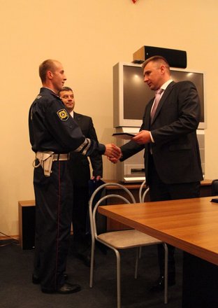 20 сентября член президиума «ОФИЦЕРОВ РОССИИ» Вячеслав Панькин и начальник орготдела Валерий Степанов посетили 4-й специальный батальон ДПС ГИБДД на спецтрассе ГУ МВД России по Москве. Они приехали в подразделение с почетной миссией – вручить награды капитану полиции Алексею Рябых, старшим лейтенантам полиции Алексею Дворянинову и Дмитрию Молчанову.