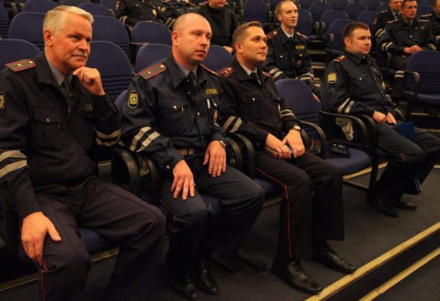 Затем в актовом зале батальона в торжественной обстановке трем отличившимся сотрудникам ДПС были вручены медали «За офицерскую честь». Представители «ОФИЦЕРОВ РОССИИ» поблагодарили их за службу.