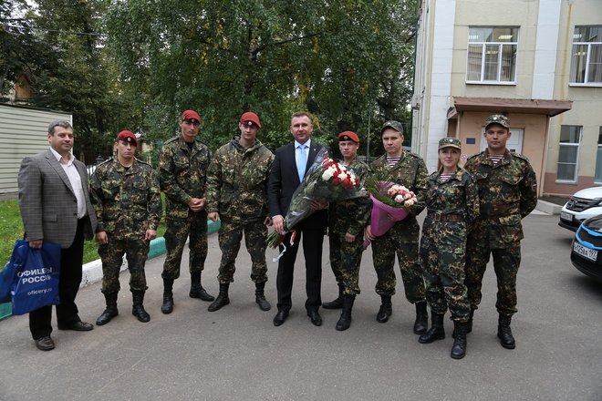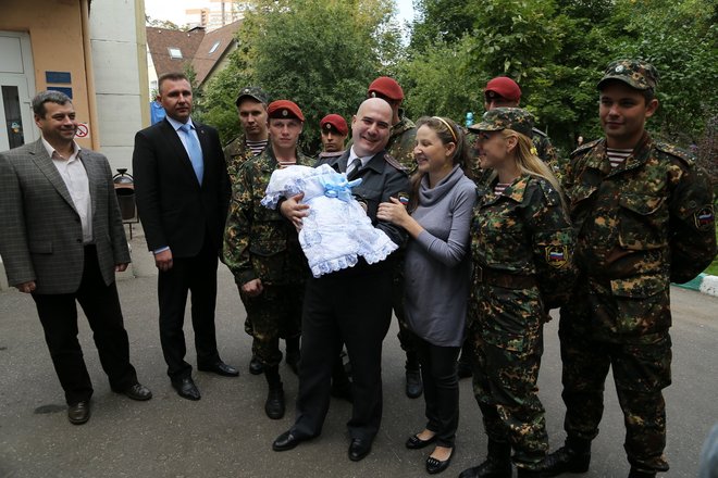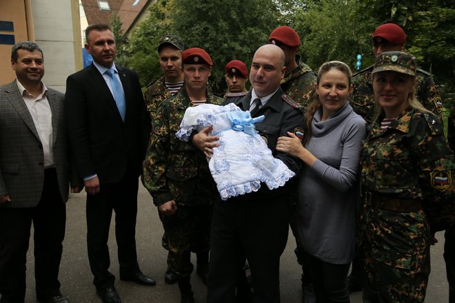 Москвичка Елена Фатьянова, которая недавно родила ребенка прямо в автомобиле, 12 сентября благополучно выписалась из роддома. Встречать маму и новорожденного Никиту пришел не только глава семьи – капитан полиции Роман Фатьянов, но и сотрудники 33-го отряда специального назначения «Пересвет» внутренних войск МВД России, помогавшие принимать роды, а также представители «ОФИЦЕРОВ РОССИИ». Они поздравили семью Фатьяновых со счастливым событием и вручили цветы и подарки.