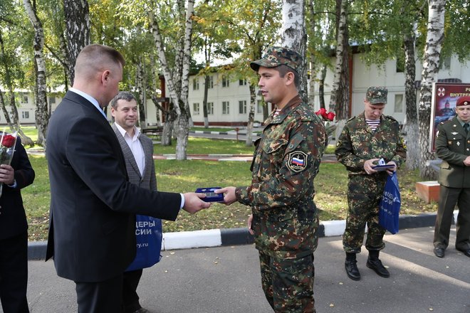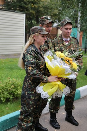 После торжественной встречи у роддома на базе ОСН «Пересвет» тоже состоялось торжественное мероприятие, на котором представители нашей организации Валерий Степанов и Вячеслав Панькин вручили принявшим роды врачам медали «За офицерскую честь».