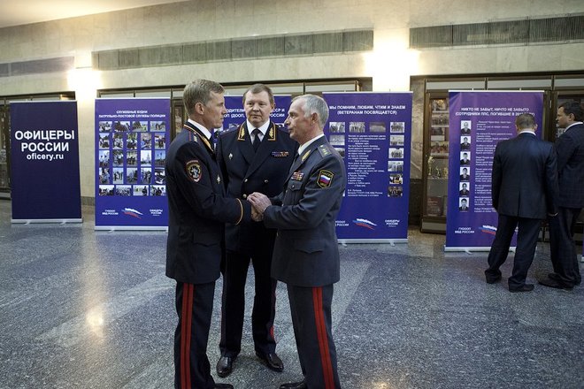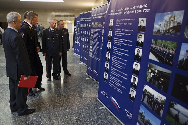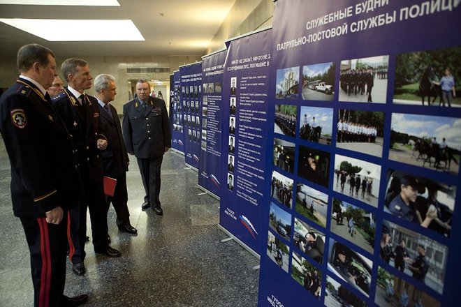В фойе была представлена выставка, посвященная работе патрульно-постовой службе полиции, ветеранам службы и погибшим сотрудникам органов внутренних дел, которую подготовили «ОФИЦЕРЫ РОССИИ».