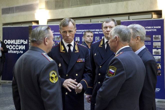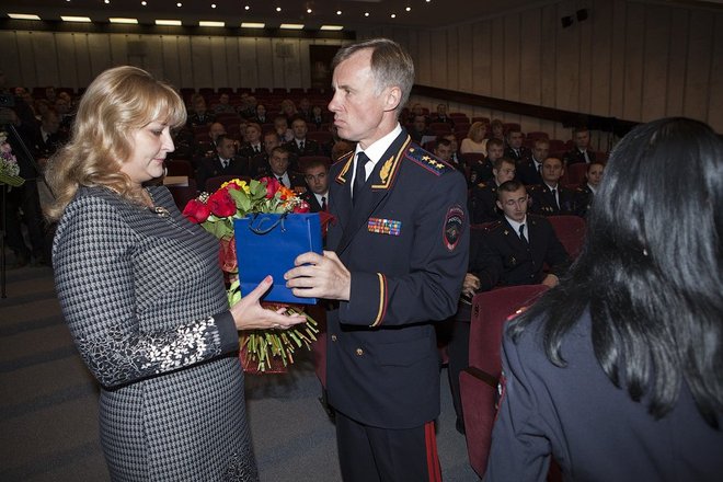 На мероприятии присутствовали вдовы и матери сотрудников, погибших при исполнении служебного долга. Память коллег участники собрания почтили минутой молчания.