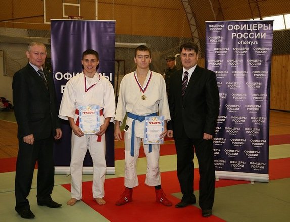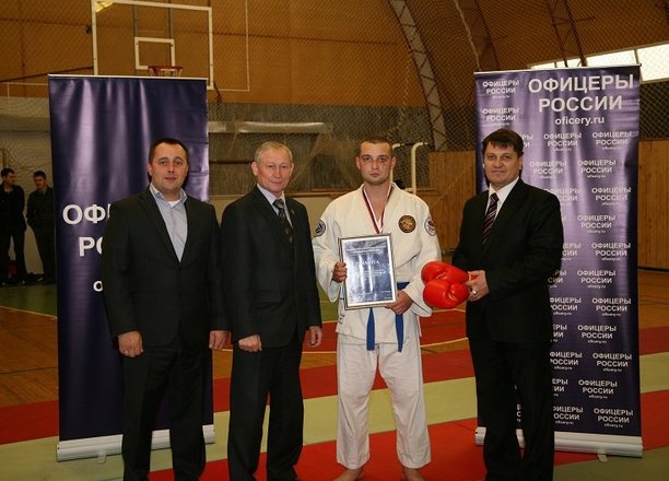 Региональным отделением «ОФИЦЕРОВ РОССИИ» был учрежден приз «За лучшую технику рукопашного боя». Судейская коллегия приняла единогласное решение – вручить боксерские перчатки и грамоту Аширову Кириллу (г. Котлас), который занял третье место в весовой категории до 80 кг.