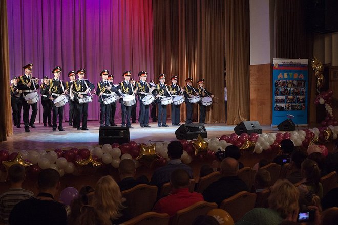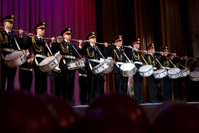 Основная программа концерта «Московская полиция – детям» началась с барабанного шоу Московского кадетского корпуса полиции.