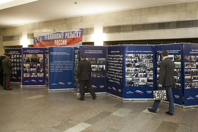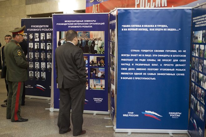 В фойе была представлена выставка "Уголовный розыск – профессия как образ жизни", которую подготовили "ОФИЦЕРЫ РОССИИ".
