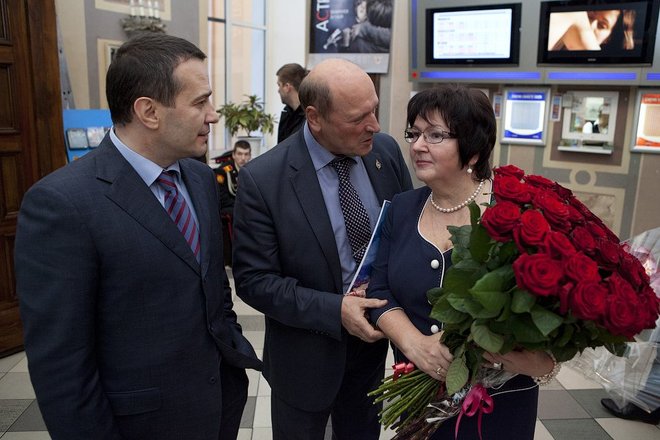 Перед началом фильма председатель президиума «ОФИЦЕРОВ РОССИИ» Антон Цветков и член президиума Вячеслав Панькин передали от нашей организации супруге генерала Ларисе Васильевне орден «За офицерскую честь» для Анатолия Александровича. Кроме того, самой Ларисе Васильевне была вручена медаль «За офицерскую честь».