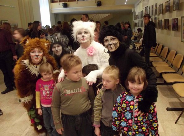 В начале октября во Дворце строителей города Череповец прошел спектакль «Кошачий суд» и выставка бездомных животных – подопечных приюта «Пес и Кот», которые готовы к передаче в семью.