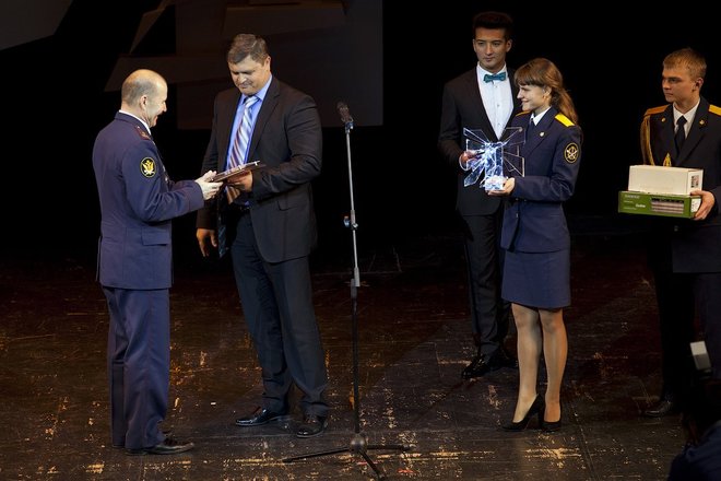 Председатель президиума «ОФИЦЕРОВ РОССИИ», член Общественного совета при ФСИН России Антон Цветков поздравил победителей фестиваля и вручил грамоту и подарок – мобильный телефон – юному дипломанту Софье Майоровой из Челябинской области.