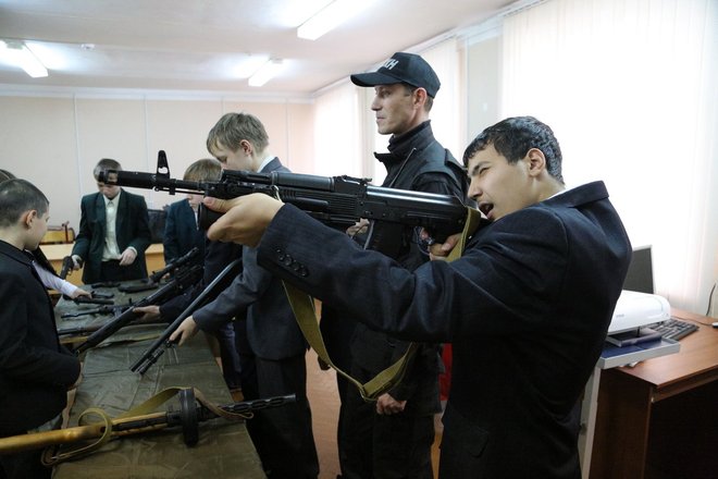 Студия «Поем легко» представила концертную программу, после которой воспитанники интерната посмотрели выставку стрелкового вооружения, попробовали свои силы в разборке и сборке автомата. Дети также смогли примерить снаряжение бойца спецназа и поупражняться в стрельбе из страйкбольного оружия.