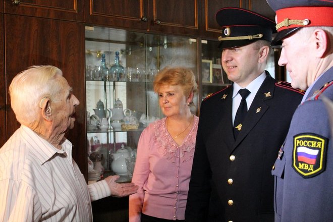 Поздравить 96-летнего ветерана службы с праздником пришли заместитель начальника ОМВД России по городу Северодвинску Виктор Филин, врио регионального представителя «ОФИЦЕРОВ РОССИИ» по Архангельской области Александр Завертяев и член регионального отделения Антонина Сидорина.