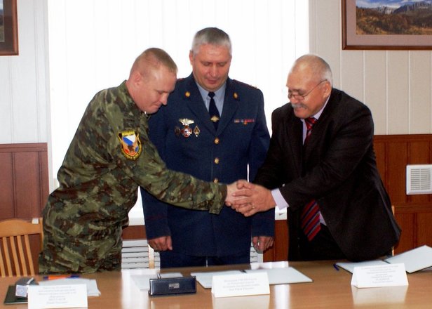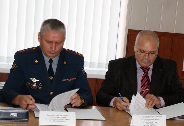 В УФСИН России по Республике Адыгея состоялось подписание трехстороннего соглашения о сотрудничестве в сфере патриотического воспитания молодежи. Соглашение подписали начальник республиканского УФСИН полковник внутренней службы Юрий Заев, председатель регионального отделения «ОФИЦЕРОВ РОССИИ» Адыгеи Геннадий Мельников и директор военно-патриотического клуба «Вертикаль» Юрий Шестаков.