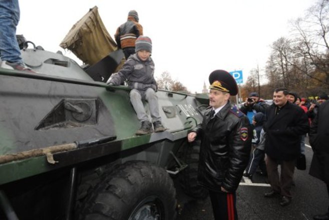 На площади возле Большой спортивной арены расположились различные выставки, на которых было представлено все, чем поистине гордятся столичные полицейские: образцы техники, стрелкового оружия, спецсредств и многое другое.