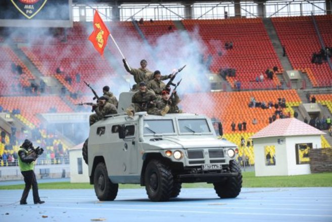 После праздничного парада и плац-концерта духового оркестра прошли показательные выступления сотрудников московского гарнизона полиции, в ходе которых они продемонстрировали свое профессиональное мастерство. Красочное зрелище предстало перед зрителями, когда сотрудники Центра специального назначения показали тактику ведения боя, освобождения заложников и захвата террористов. Аплодисментами встречали полицейских кавалеристов и кинологов.