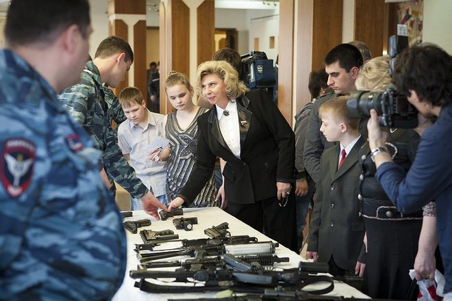 Особый восторг у школьников вызвала уникальная экспозиция, которую представили сотрудники подразделений столичной полиции – Центра специального назначения, УГИБДД, экспертно-криминалистической лаборатории, инженерно-саперного отдела. Дети с большим интересом рассматривали оружие спецназовцев, костюм сапера, «снимали» отпечатки пальцев.