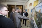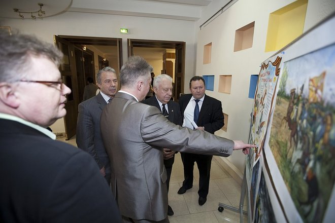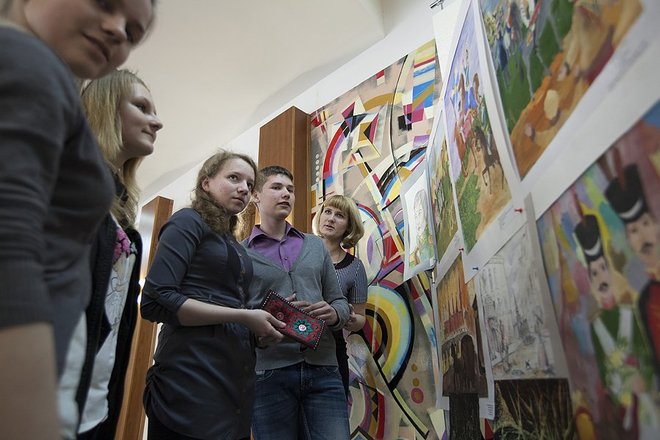 Перед началом мероприятия в фойе Культурного центра, где собирались гости и участники фестиваля, царила радостная атмосфера. Ребята и взрослые с интересом рассматривали выставку лучших рисунков, посвященную 200-летию Бородинской битвы. Конкурс проходил в рамках фестиваля и собрал несколько десятков юных художников.
