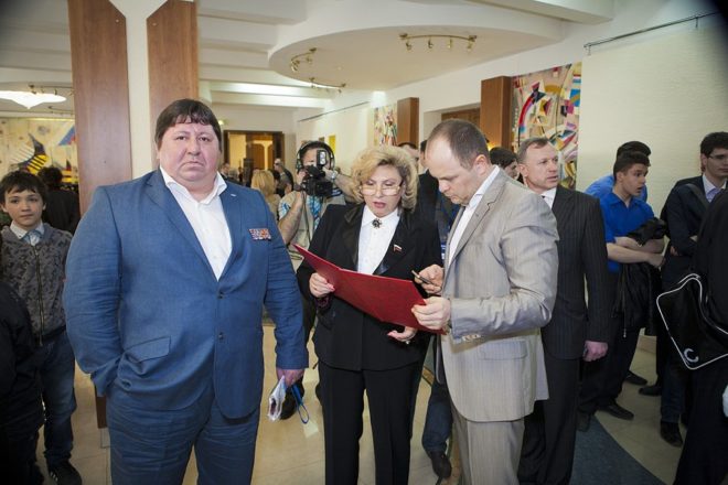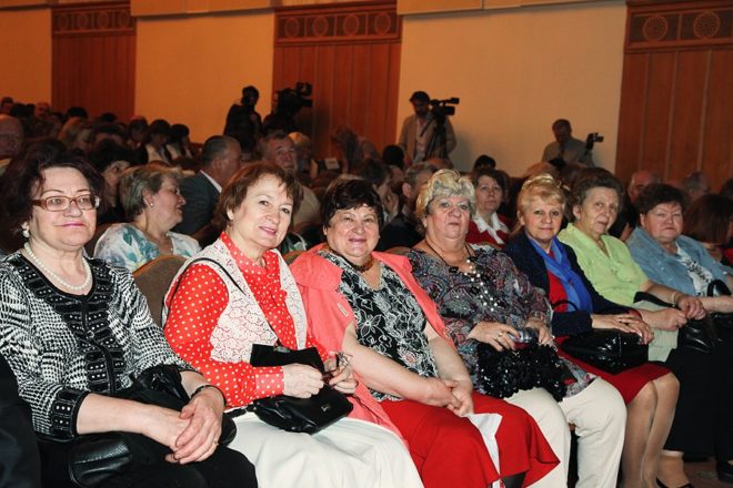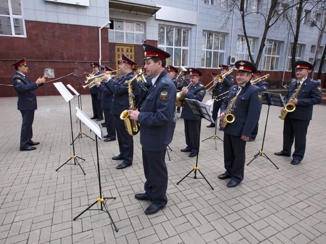 И вот публика расселась по местам и концерт начался. Под звуки торжественной музыки знаменная группа внутренних войск МВД внесла в зал государственный флаг России, а вслед за этим зазвучал гимн РФ.