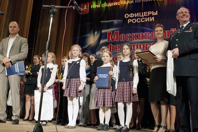 В преддверии Дня Победы, 24 апреля, в столичном Культурном центре ГУ МВД России состоялся грандиозный заключительный гала-концерт Московского фестиваля детской патриотической песни на премию «ОФИЦЕРЫ РОССИИ». Четвертый год подряд его проводит Общероссийская общественная организация «ОФИЦЕРЫ РОССИИ» совместно с Главным управлением МВД по Москве при поддержке правительства Москвы и столичного департамента образования.