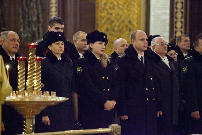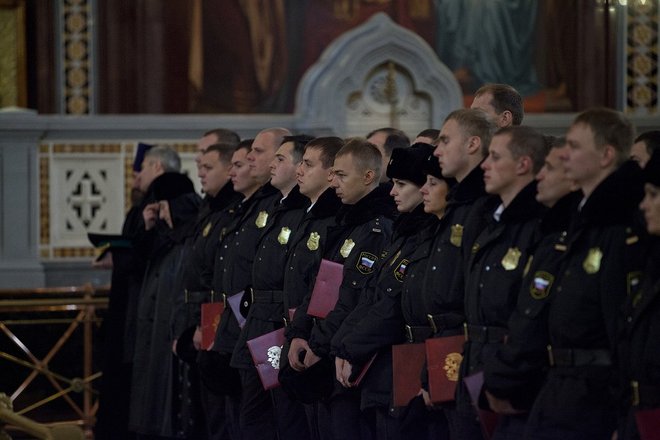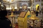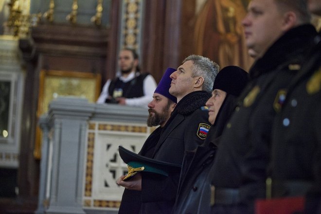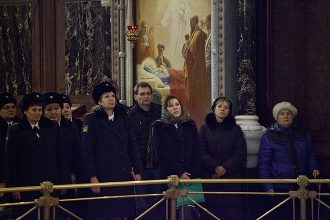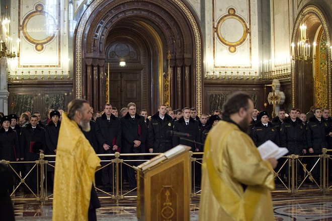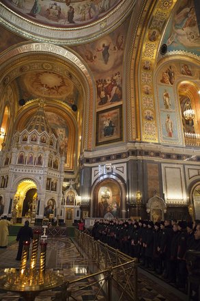 По традиции для гостей и участников церемонии в Верхнем зале Храма Христа Спасителя прошел благодарственный молебен.