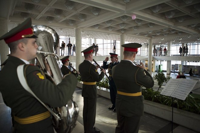 Затем началась большая концертная программа. Зрители с восторгом и аплодисментами встретили выступление артистов современного оперного шоу ANGELS, уникального ансамбля детей и подростков с нарушениями слуха «Ангелы надежды», победителей фестиваля детской патриотической песни на премию «ОФИЦЕРЫ РОССИИ» разных лет Валерия Каденука и Александра Цуры, известного российского богатыря Александра Муромского.