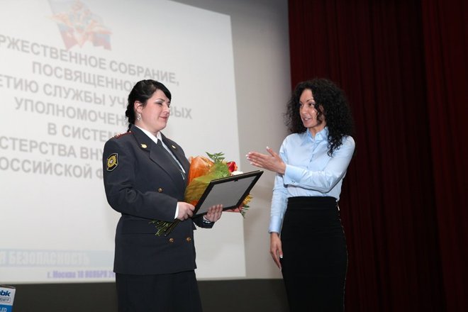 Председатель Благотворительного совета «ОФИЦЕРОВ РОССИИ», заместитель председателя Координационного женского совета при ГУ МВД России по Москве Сабина Цветкова также вручила благодарность старшему участковому уполномоченному отдела полиции №2 УМВД России по г. Ангарску Иркутской области Александре Непомнящей.