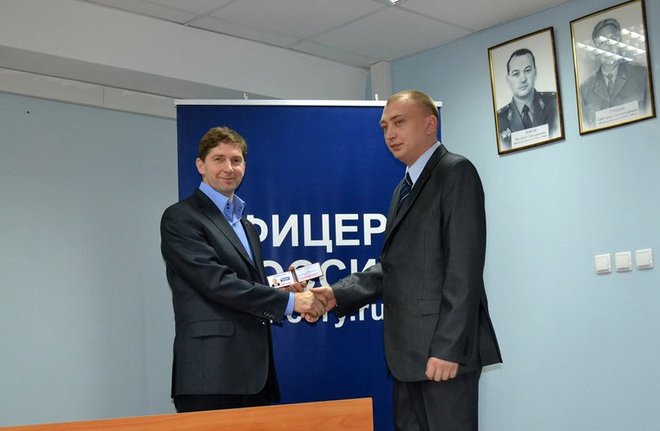 Представитель регионального отделения «ОФИЦЕРОВ РОССИИ» по Москве Игорь Калашников в торжественной обстановке вручил новым членам организации удостоверения и поздравил всех с созданием муниципального отделения.