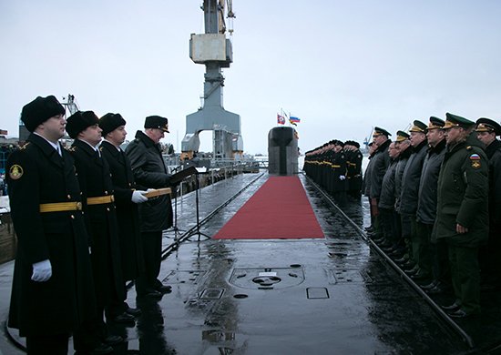 Главком ВМФ России адмирал Виктор Чирков зачитал приказ, согласно которому ракетоносец проекта 955 «Борей» включен в состав 25-й дивизии подводных сил Тихоокеанского флота с дислокацией в городе Вилючинск, сообщает РИА Новости.