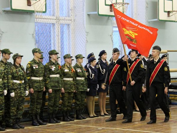 Команды-участники должны были преодолеть три этапа – строевой смотр, почетный караул и тест «Равнение на героев».