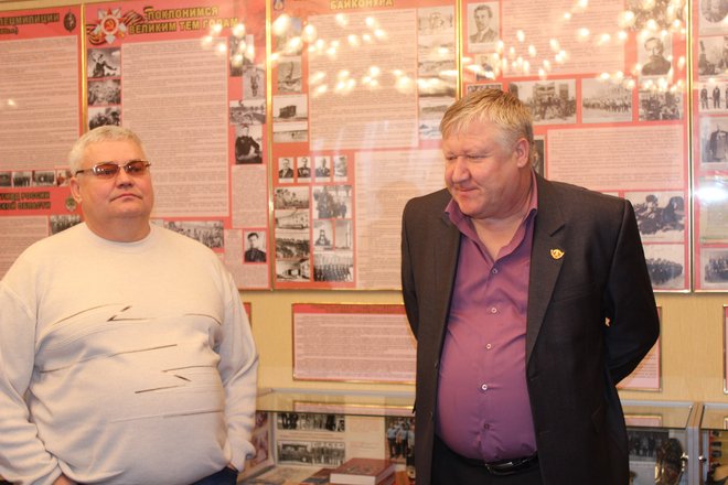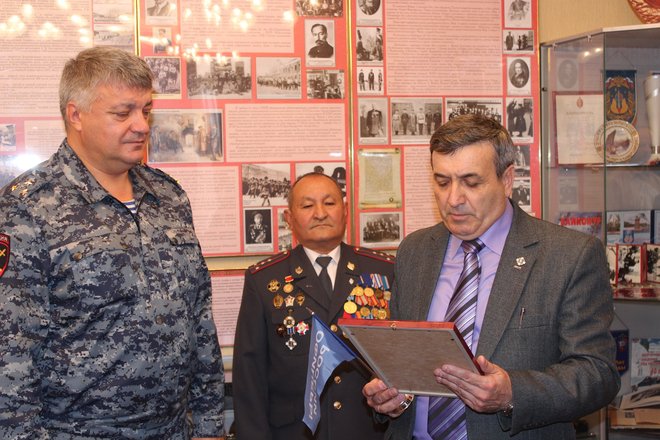 После экскурсии Петр Майданов поблагодарил начальника УМВД России на комплексе Байконур полковника полиции Алексея Кузьмина и от организации вручил музею грамоту и сувенир, а также сделал запись в книге посетителей.