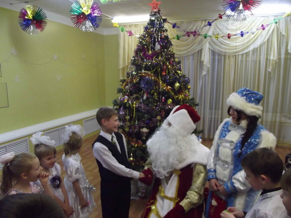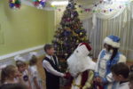 Традиционно к ребятам на праздник пришли Дед Мороз и Снегурочка. Дети с удовольствием рассказывали гостям стихи, увлеченно водили вокруг елки хороводы, играли в игры, а потом, как и положено, получили новогодние подарки.