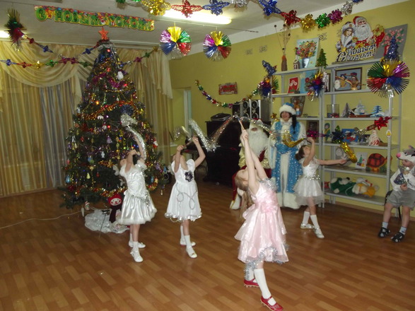 Дед Мороз тоже остался доволен, так как ребята подготовили для него несколько концертных номеров: мальчики и девочки спели песни, а самые маленькие воспитанницы показали танец снежинок.