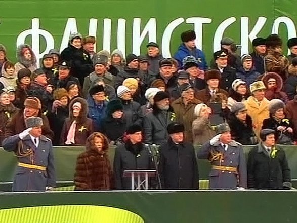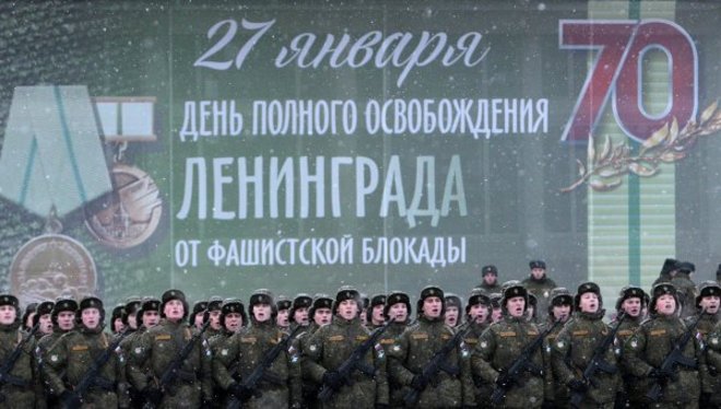 Военный парад, посвященный 70-й годовщине освобождения города от фашистской блокады, прошел у Пискаревского мемориального кладбища в Санкт-Петербурге. Здесь покоятся 500 тысяч ленинградцев, погибших в полностью окруженном фашистами городе.