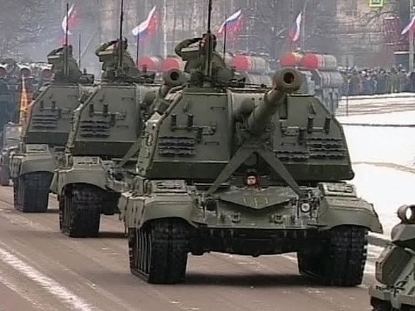 Вместе с «ветеранами» времен Великой Отечественной войны сегодня в строй встали современные боевые машины, стоящие на вооружении российской армии – комплексы «Град», «Панцирь-С», «Искандер», танки Т-72Б3.