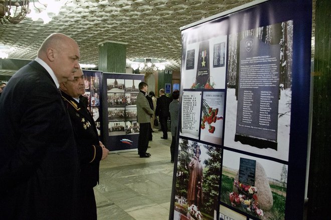 В фойе ДК была организована фотовыставка «Сыны России – наша боль и память», подготовленную организацией «ОФИЦЕРЫ РОССИИ».