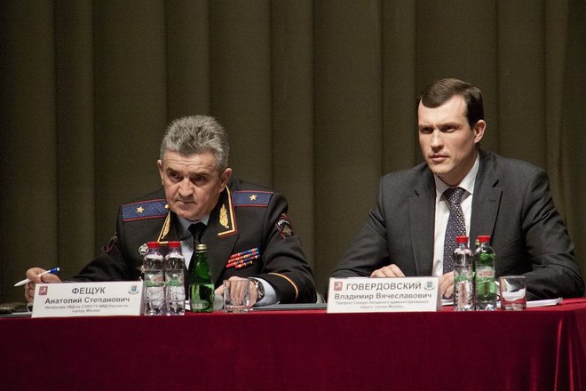 14 февраля в Доме культуры «Салют» начальник УВД по СЗАО ГУ МВД России по Москве генерал-майор полиции Анатолий Фещук отчитался об итогах оперативно-служебной деятельности управления в 2013 году перед жителями округа. Во встрече частности также принял участие префект СЗАО Владимир Говердовский.