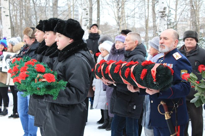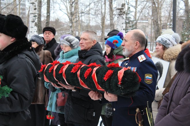 «ОФИЦЕРЫ РОССИИ» Архангельской области возложили гирлянду к мемориалу погибших