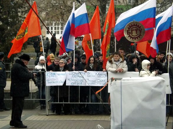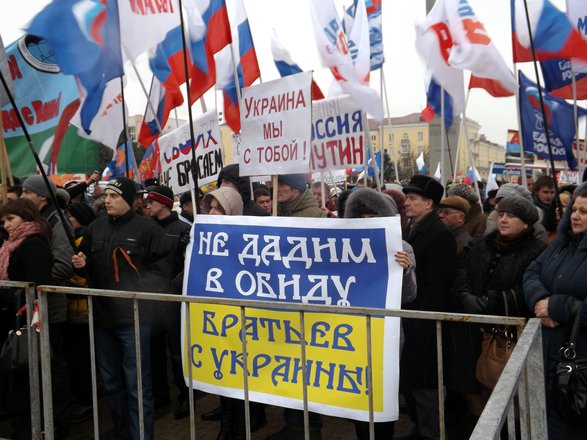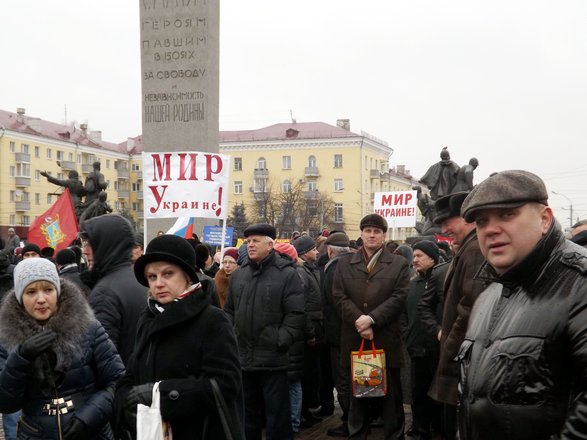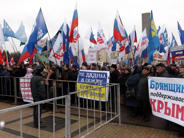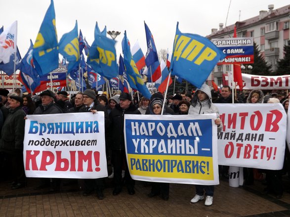 Многие брянцы держали в руках лозунги: «Крым, мы с тобой», «Своих не сдаем», «Майдан не пройдет». Молодежь раздавала георгиевские ленточки. Участники митинга, среди которых были губернатор Николай Денин, председатель Брянской областной Думы Владимир Гайдуков, главный федеральный инспектор по Брянской области Леонид Соломатин, осудили тех, кто стремится расколоть соседнее государство, совершает противоправные действия, распространяет антироссийские настроения. Выступающие призывали не допустить разрыва добрососедских отношений между нашими государствами.