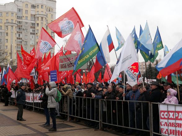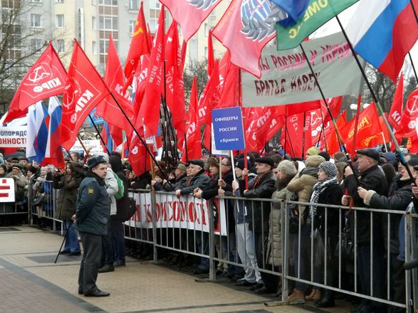 3 марта в Брянске на площади Партизан прошла акция «Народный сход за братский народ». В мероприятии приняли участие более пяти тысяч человек: жители города, представители органов власти, политических партий и общественных организаций, в том числе и регионального отделения «ОФИЦЕРОВ РОССИИ» Брянской области.