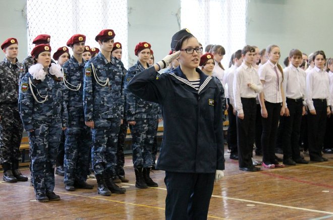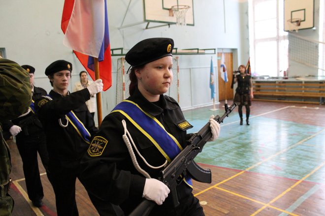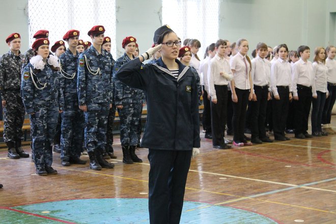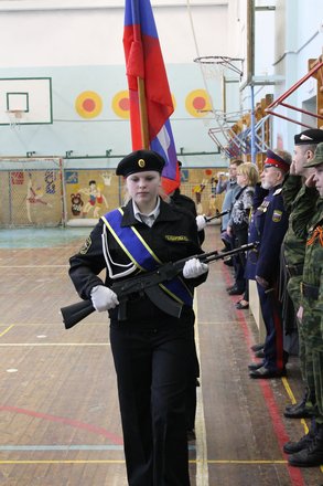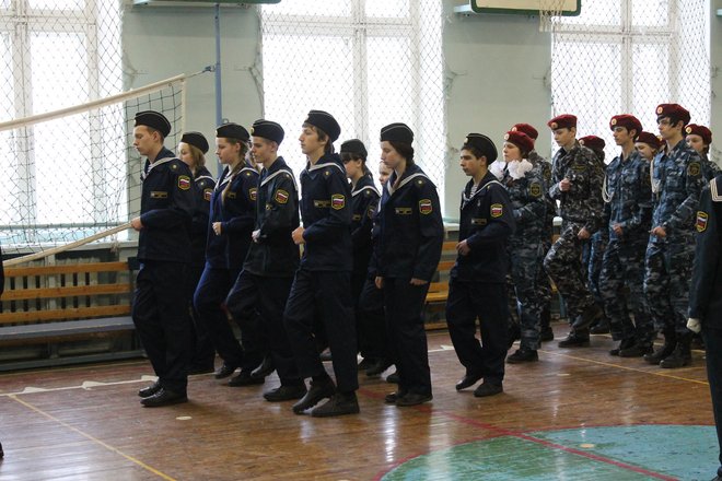 Военно-патриотический клуб в этой школе формируются на основе класса, поэтому на празднике можно было увидеть представителей клуба различных возрастов.