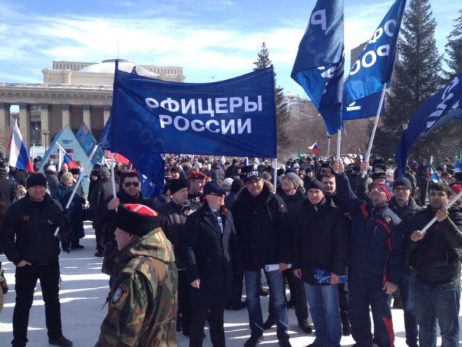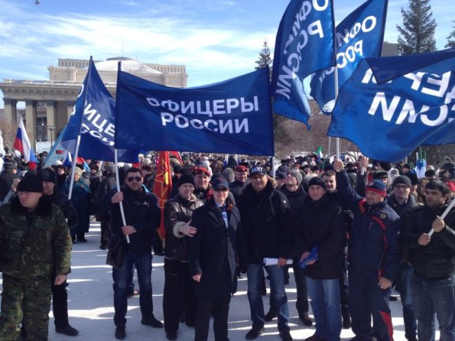 7 марта по инициативе регионального отделения «ОФИЦЕРОВ РОССИИ» Новосибирской области при поддержке областного правительства на главной площади города Новосибирска состоялся сход в поддержку братского народа Украины и Крыма. Он проходил под лозунгами «Народный сход за братский народ», «Своих не бросаем».